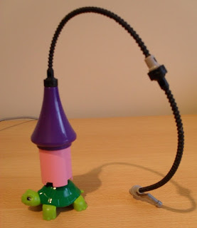 Já sabia que a tartaruga andava com a casa às costas, mas o meu filho mais novo, de três anos, criou uma tartaruga que anda com um castelo às costas. Aquilo que sai do cimo da torre do castelo, segundo ele, é uma mangueira, para apagar algum eventual fogo. Previdente!