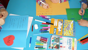 Por aqui, o Dia do Pai começou com a Vassoura Voadora e a Varinha Mágica a dedicarem uma canção ao Gato Rogério. Depois do pequeno-almoço, elas e o Livro de Feitiços entregaram os cartões que tinham feito com a minha ajuda.
