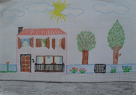 P.S. - Não é que me queira desculpar (só um bocadinho), mas os bicos estavam pouco afiados e não usei lápis de carvão (com a amiga borracha) para desenhar, por isso o que saiu torto (como as janelas) ... torto ficou!