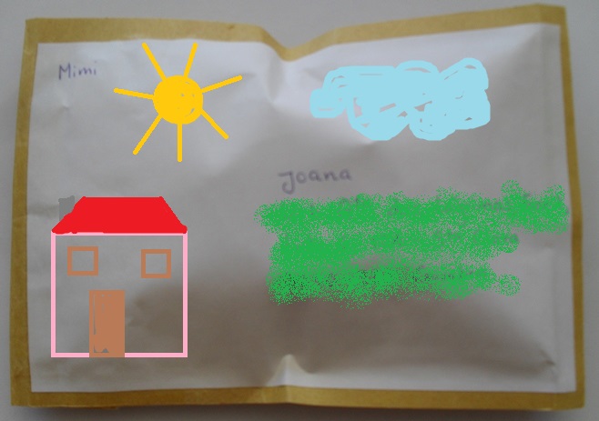 Ah, antes que alguém ache que eu enfeitei os envelopes, não, não o fiz. Apenas, como tinha de ocultar as moradas das premiadas, aproveitei e fiz um desenhos no Paint. Um bocadinho à balda, como se pode constatar.