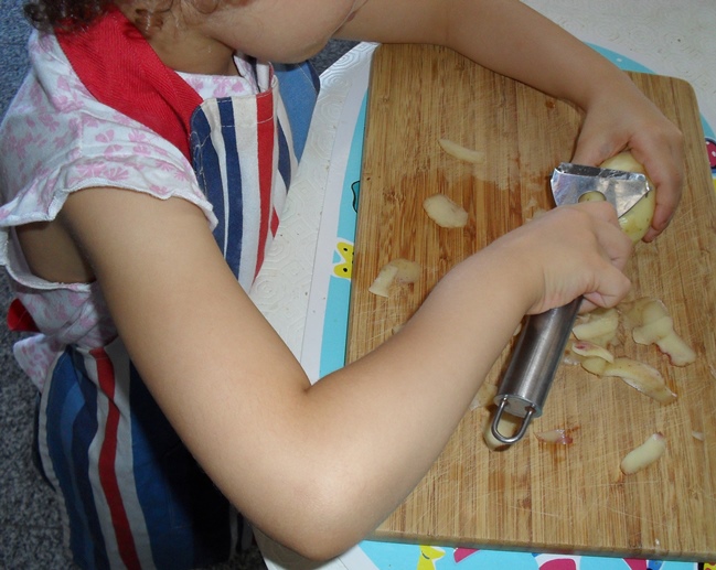 Resultado: a Varinha demorou muito a descascar as (duas) batatas, mas ficou tão contente, que valeu a pena a espera!