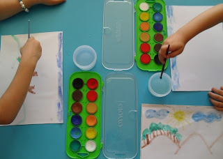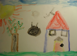 Há uns dias, enquanto o Feitiço dormia a sua sesta, houve sessão de pintura. Mostro-vos a sessão em três momentos (em quatro fotografias).