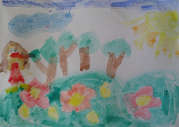 | Pintura final da Vassoura. A menina sofreu um acidente e, em vez de boca, passou a ter um lenço (que segurava com as mãos) à frente da cara... |