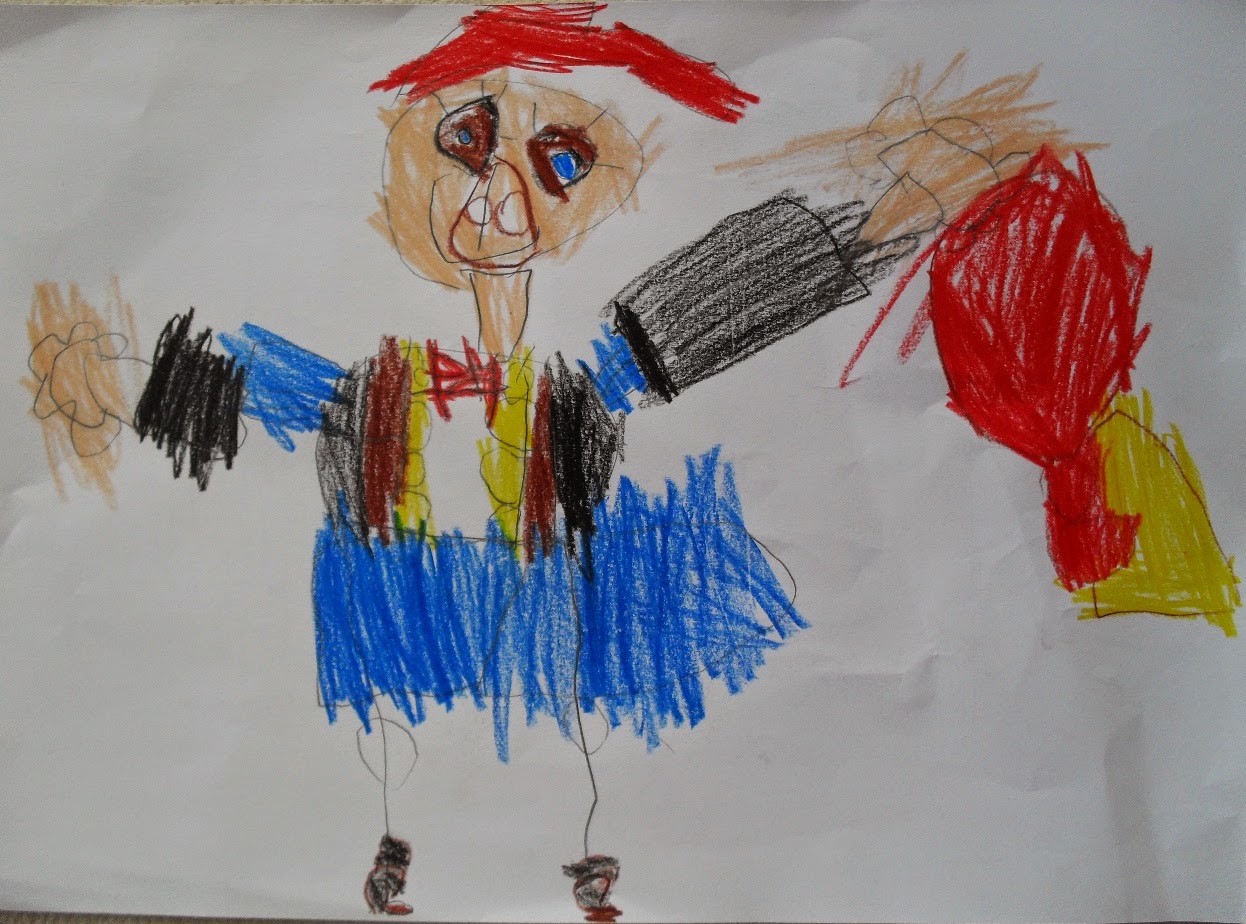 O Rogério sugeriu que eu desse umas pistas, mas não acredito que quem tenha filhos pequenos não consiga identificar esta simpática e destemida personagem, tão bem retratada (cof! cof! - orgulho de mãe + parcialidade óbvia a falar) pelo meu artista.