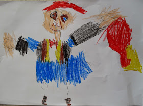 O Rogério sugeriu que eu desse umas pistas, mas não acredito que quem tenha filhos pequenos não consiga identificar esta simpática e destemida personagem, tão bem retratada (cof! cof! - orgulho de mãe + parcialidade óbvia a falar) pelo meu artista.