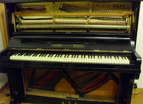 À custa disto, até fizemos uma amolgadela na parede. Sabem, é que o piano  pesa 300 kg...