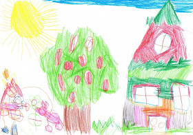 - Esta casa é muito linda, uma árvore e o céu e o sol, tão lindo!