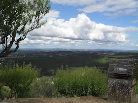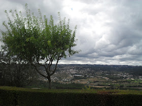 O Castelo de Ourém, como aliás todos os castelos que me lembro de visitar, fica no cimo de um monte. O que nem sempre acontece é a estrada ser tão estreita e com tantas curvas apertadas... O Rogério manteve-se do lado direito, mesmo nas curvas piores. Numa dessas curvas, as rodas direitas do carro pisaram o empedrado e o carro patinou. O Rogério fez umas tentativas de resolver o problema, mas não conseguiu. Entretanto, surgiram alguns automóveis, formando-se uma fila. O condutor do carro imediatamente atrás do nosso deu algumas sugestões, ajudando o Rogério a estacionar o carro na berma (onde, aliás, ele deixou o seu). Fizemos o resto do caminho a pé.