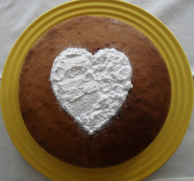 | Pulverizei açúcar na Bimby e deitei-o por cima de uma folha de papel na qual tinha desenhado e recortado o coração. |